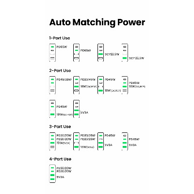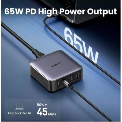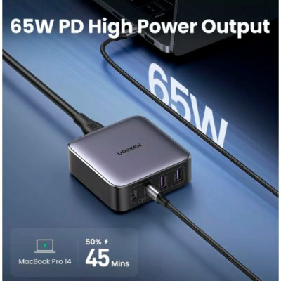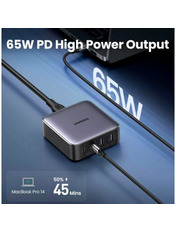 Бренд Ugreen Гарантія, місяців 12 Основний колір Чорний Потужність, W 65 Колір Grey Роз'єми 2 USB-A + 2 USB-C Кількість портів USB-C 2 Кількість портів USB-A 2 Кабель в комплекті Відсутній Артикул UGR-90747 -
