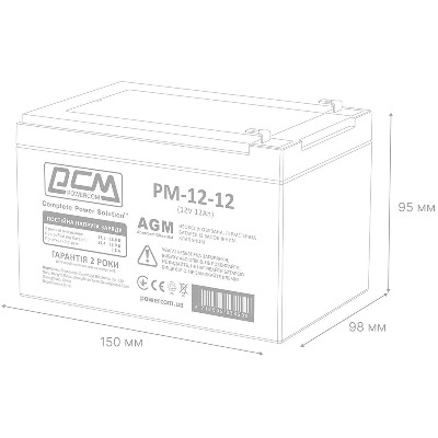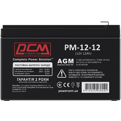 • Акумулятор для ДБЖ PowerCom AGM PM-12-12 12V 12Ah (PM-12-12)
