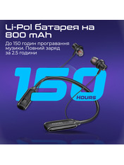спортивні, бездротове, Bluetooth, закриті, Випромінювач - 12 мм, 16 Ом, чутливість - 98 дБ, 20 - 20000 Гц, тип випромінювача - динамічний, з мікрофоном, Спрямованість мікрофона - всеспрямований, Версія Bluetooth - 5.3, Матеріал амбушур - силікон, 150 год, Black, 63 г