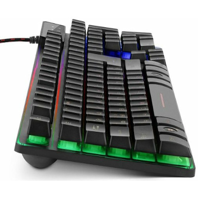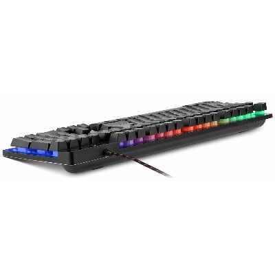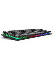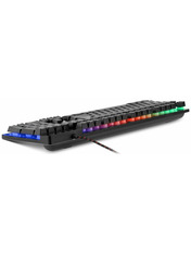 Real-EL Gaming 8700 — стильна дротова клавіатура, яка є чудовим поєднанням функційності та трендового дизайну. Особливістю цієї мультимедійної клавіатури є металева основа, знижений шум при роботі, тихий та чіткий хід клавіш, 12 Fn кнопок швидкого доступу до Windows, Інтернету та Мультимедіа, кабель у тканинному обплетенні. Кабель забезпечить достатню довжину для зручного підключення пристрою до комп'ютера. Клавіатура також забезпечує тривалий час роботи та понад 10 000 000 натискань. Модель має яскраве RGB-підсвічування, яке чудово підійде для геймінгу. Крім того, освітлення клавіш дозволяє насолоджуватись роботою навіть у темряві. Особливості: - високоякісна мембрана; - кнопки швидкого доступу FN; - ергономічний ігровий дизайн.