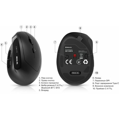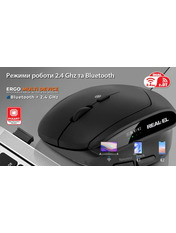 Тип сенсора Оптичний Інтерфейс підключення Bluetooth + USB 2.4GHz (Radio) Роздільна здатність, dpi 2400 Кількість кнопок 6 Тип підключення Бездротове Таксон Миші Бренд REAL-EL Гарантія, місяців 12 Основний колір Чорний Колір Black Артикул EL123200058 - Відгуки (0)