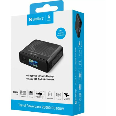 • Павербанк Sandberg Travel 1xUSB-C + 1xUSB-A 15W 20000mAh Black (421-25)