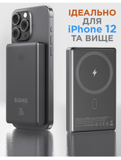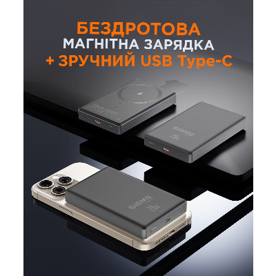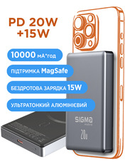 • Павербанк Sigma X-power SI10A7QL-MAG 1xUSB-C 20W 10000mAh Gray (4827798955116)