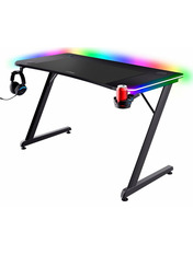 Trust GXT 7010 Luminus — міцний стіл для геймерів зі світлодіодною RGB-підсвіткою. Завдяки просторому розміру 120x60x74 см у вас буде достатньо місця для монітора, клавіатури, миші тощо. За допомогою 10 різних колірних режимів ви навіть можете адаптувати освітлення до будь-якого настрою чи гри, у яку ви граєте. Верхній шар покриття стола із захистом від подряпин із карбоновим ефектом означає, що він залишатиметься презентабельним незалежно від того, як часто ви його використовуєте. Завдяки підстаканнику, гачку для гарнітури та вбудованій системі керування кабелями на цьому столі ваші аксесуари будуть упорядковані та завжди знаходитимуться під рукою. Цей стіл виконує подвійні функції. Із вбудованим бездротовим зарядним пристроєм ви навіть можете заряджати телефон під час гри. Просто покладіть пристрій на стіл і ввімкніть живлення, проводів не потрібно. В комплекті також є килимок для мишки.
