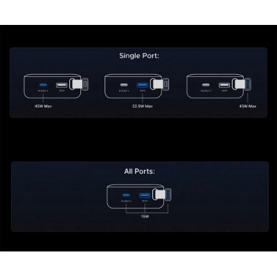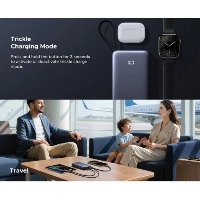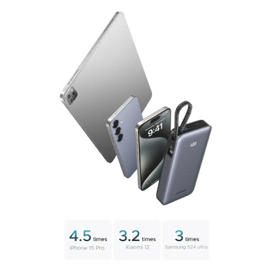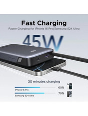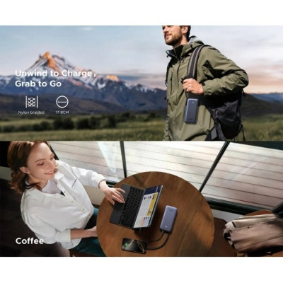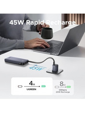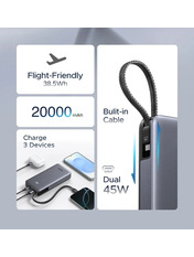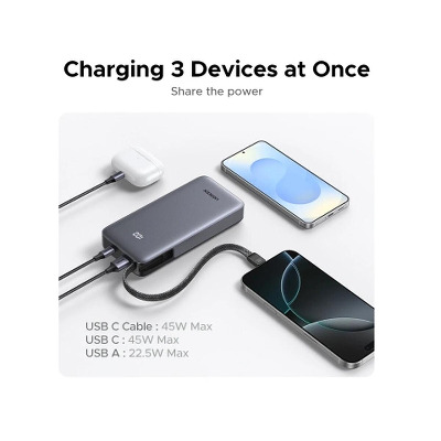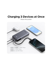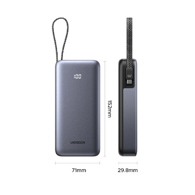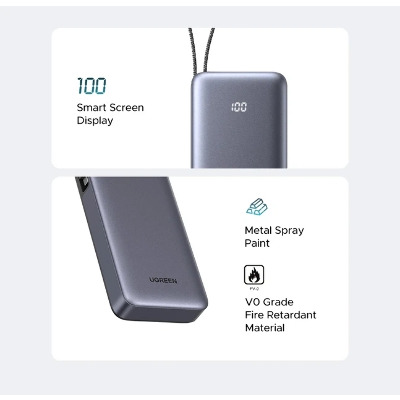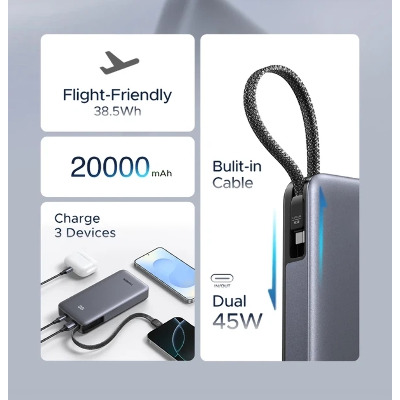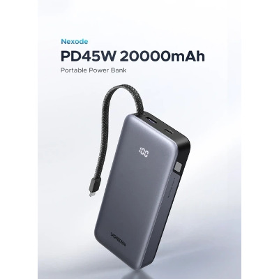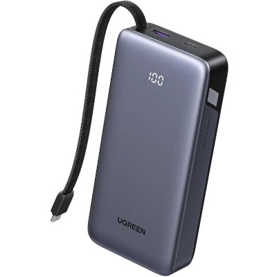 • Павербанк Ugreen Built-in Cable 2xUSB-C + 1xUSB-A 45 20000 Dark Gray 45W 20000mAh Dark Gray (55988)