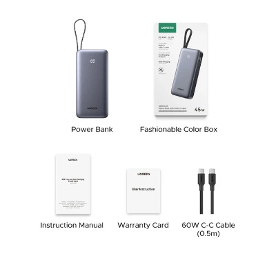 Павербанк Ugreen Built-in Cable 2xUSB-C + 1xUSB-A 45W 20000mAh Dark Gray (55988)