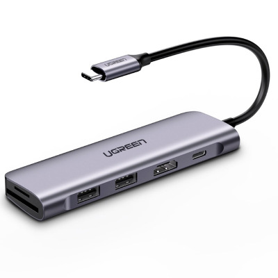 Концентратор USB Type-C Ugreen CM195 2xUSB 3.0 + HDMI + Cardreader, Gray (70411)