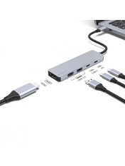 • Proove Iron Link 5 in 1 — хаб, який збільшить ваші можливості! Основні характеристики: - Порт: 2xUSB 3.0; - Конектор: 2хType-C; - Матеріал: алюміній; - Швидка зарядка: PD 3.0; - HDMI: 3840х2160, 30Hz макс; - Передавання даних: до 5 Gbps; - Сумісні ОС: Windows, MacOS, Linux. Особливості товару Proove Iron Link 5 in 1 обладнаний портами USB 3.0, що надають можливість під'єднання до двох пристроїв одночасно. Зі швидкістю до 5 Gbps, хаб забезпечує швидку та ефективну роботу пристроїв. Крім того, він обладнаний портами Type-C, які підтримують режим швидкої зарядки PD 3.0 та мають максимальну потужність 100W. Дизайн Proove Iron Link 5 in 1 — це невеликий пристрій, який легко поміщається в рюкзаку або кишені. Він дає змогу під'єднати: флешку, зовнішній жорсткий диск, мишку, клавіатуру чи будь-який інший пристрій з USB конектором. Захисні властивості Виготовлений із міцного алюмінію, Proove Iron Link 5 in 1 забезпечує стійкість до зовнішніх ушкоджень, корозії та температурних перепадів, що гарантує довгий термін служби.