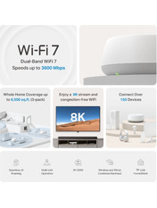 Гарантія, місяців 36 Максимальна швидкість Wi-Fi BE3600 (3600Мбіт/с) Кількість антен 4 WAN порт Ethernet Наявність порта USB Ні Тип антен Внутрішні Wi-Fi Стандарт Wi-Fi 7 (802.11be) Бренд TP-Link Основний колір Білий - Відгуки (0)