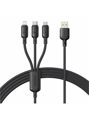 Кабель синхронізації Baseus Silky One-for-Three USB to Lightning + microUSB + Type-C 100W 1,5m Black (P10377705123-00)