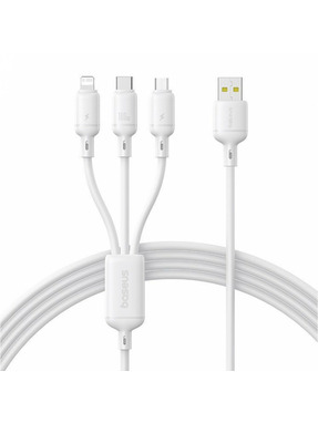 Кабель синхронізації Baseus Silky One-for-Three USB to Lightning + microUSB + Type-C 100W 1,5m White (P10377705213-00)