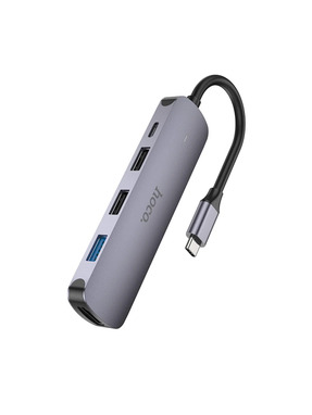 USB-хаб Hoco HB27 Type-C (1xUSB 3.0 + 1xUSB 2.0 + 1xType-C PD + 1xHDMI) Metal Gray (6931474769329)