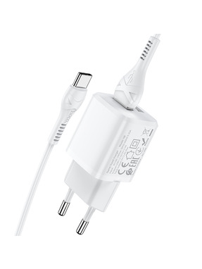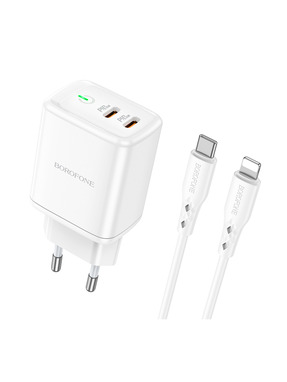Мережевий зарядний пристрій Borofone BN9 (1 USB-A + 1 USB-C) 35W + кабель Type-C to Lightning White