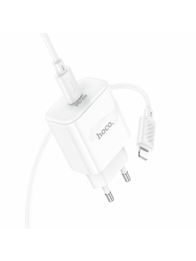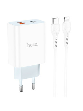 Мережевий зарядний пристрій Hoco C97A (1 USB-A + 1 USB-C) 20W + кабель Type-C to Lightning White