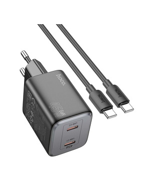 Мережевий зарядний пристрій Hoco CS25A (1 USB-A + 1 USB-C) 20W + кабель Type-C to Type-C Black