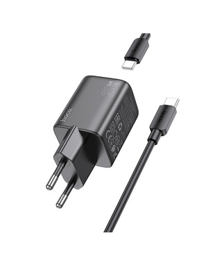 Мережевий зарядний пристрій Hoco CS25A (1 USB-A + 1 USB-C) 20W + кабель Type-C to Lightning Black