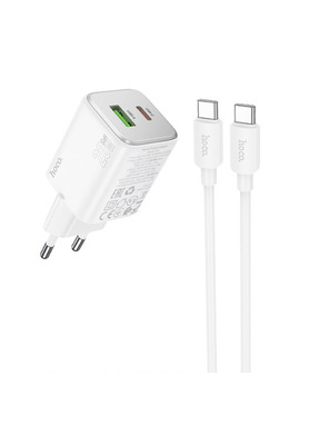 Мережевий зарядний пристрій Hoco C147A (1 USB-A + 1 USB-C) 20W + кабель Type-C to Type-C White