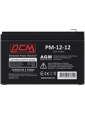 Акумулятор для ДБЖ PowerCom AGM PM-12-12 12V 12Ah (PM-12-12)