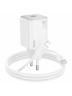 Мережевий зарядний пристрій Hoco N40 Mighty (1 USB-C) 20W + кабель Type-C to Lightning White