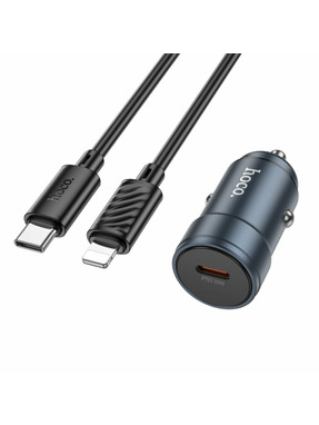 Автомобільний зарядний пристрій Hoco Z57 30W 1 USB-A +кабель Type-C to Lightning Metal Gray (Metal Gray)