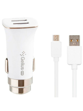 Автомобільний зарядний пристрій Gelius GP-CC01 18W 2 USB-A +кабель MicroUSB White (GP-CC01)