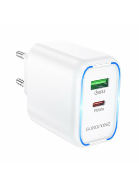 Мережевий зарядний пристрій Borofone BA89A Destello (1 USB-A + 1 USB-C) 30W White